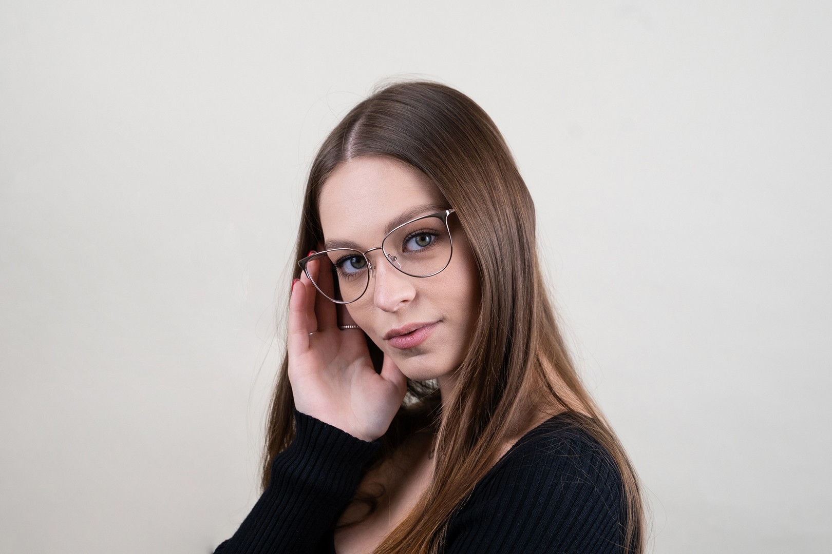 - Rožnata barva okvirjev se odlično ujema s hladnim tonom kože ter s svetlo rjavimi ali svetlo blond lasmi.