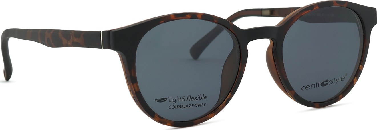 - Del očal je tudi dodaten sončni klip, ki se enostavno pritrdi na okvir očal in tako takoj dobite sončna očala. Klip s svojo izvedbo in dizajnom odlično posnema obliko okvirja, njegova namestitev pa je zelo hitra in enostavna. V primeru višjih plus dioptrij pa je potrebno izbrati stanjšano varianto očalnih leč, da se klip ne dotika sprednje sferične površine leč in tako pravilno sedi na okvirju.
