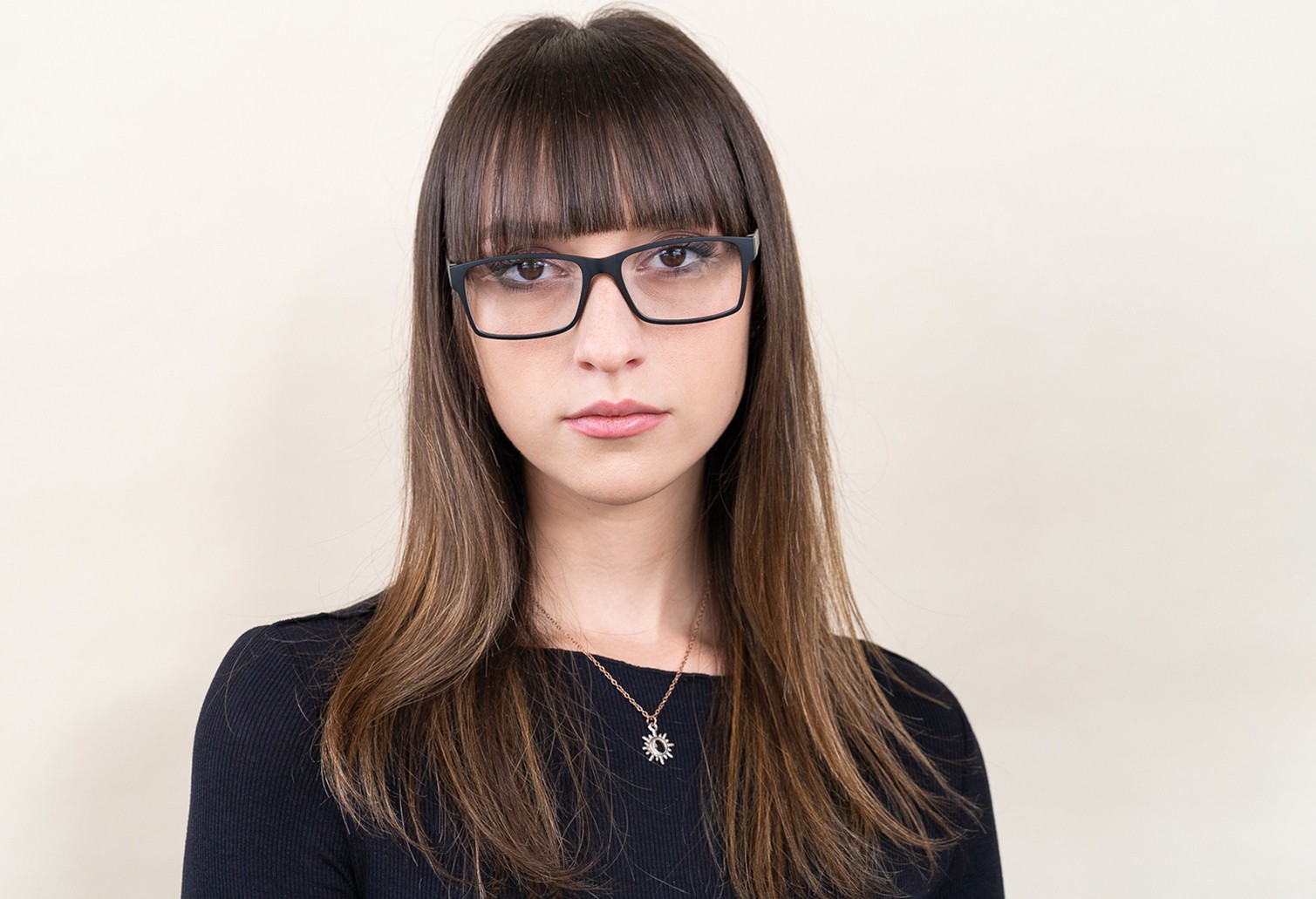 • Črna barva okvirjev se odlično ujema s hladnim tonom kože ter s svetlo rjavimi, črnimi ali svetlo blond lasmi.