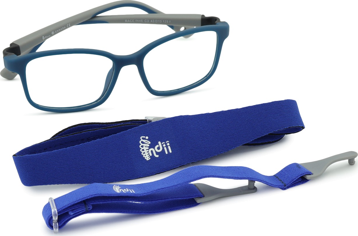 Model očal Indii Kids IN ima dva nastavljiva tekstilna trakova, ki pomagata zmanjšati tveganje izgube očal in zagotavljata boljše prileganje na glavi med različnimi otroškimi aktivnostmi.