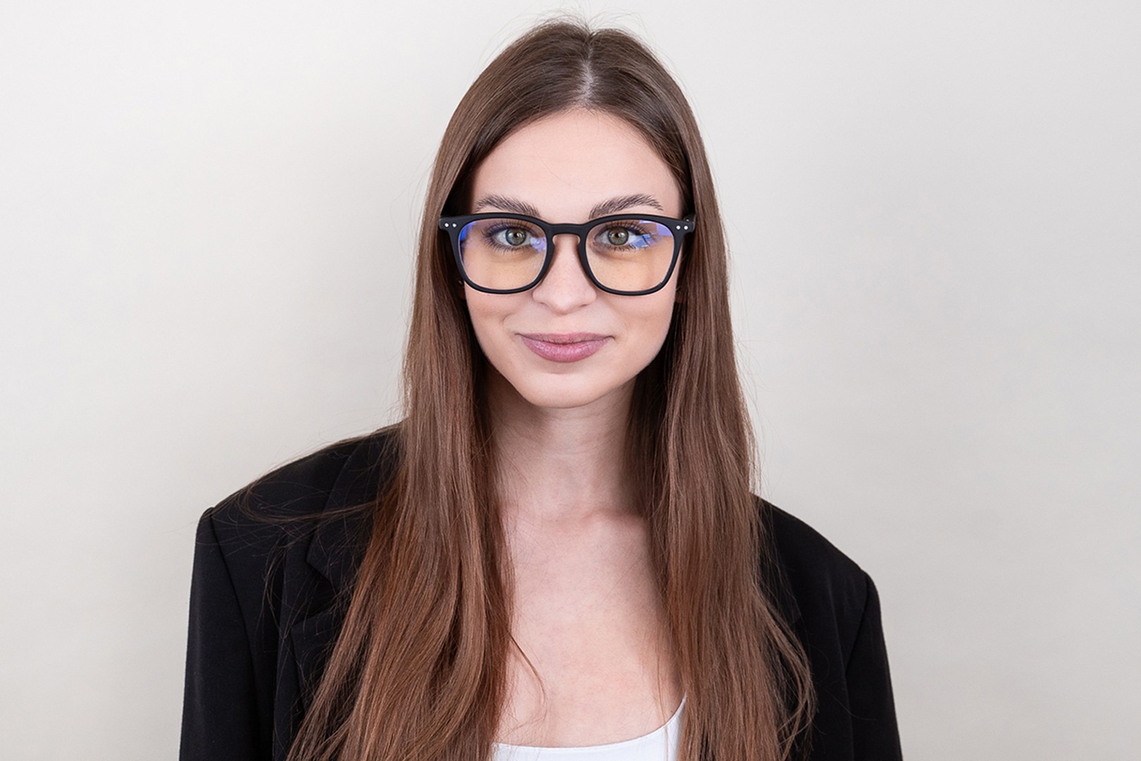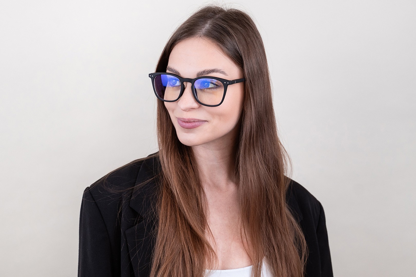 - Črna barva okvirjev se odlično ujema s hladnim odtenkom kože in s svetlo rjavimi, črnimi ali svetlo blond lasmi.