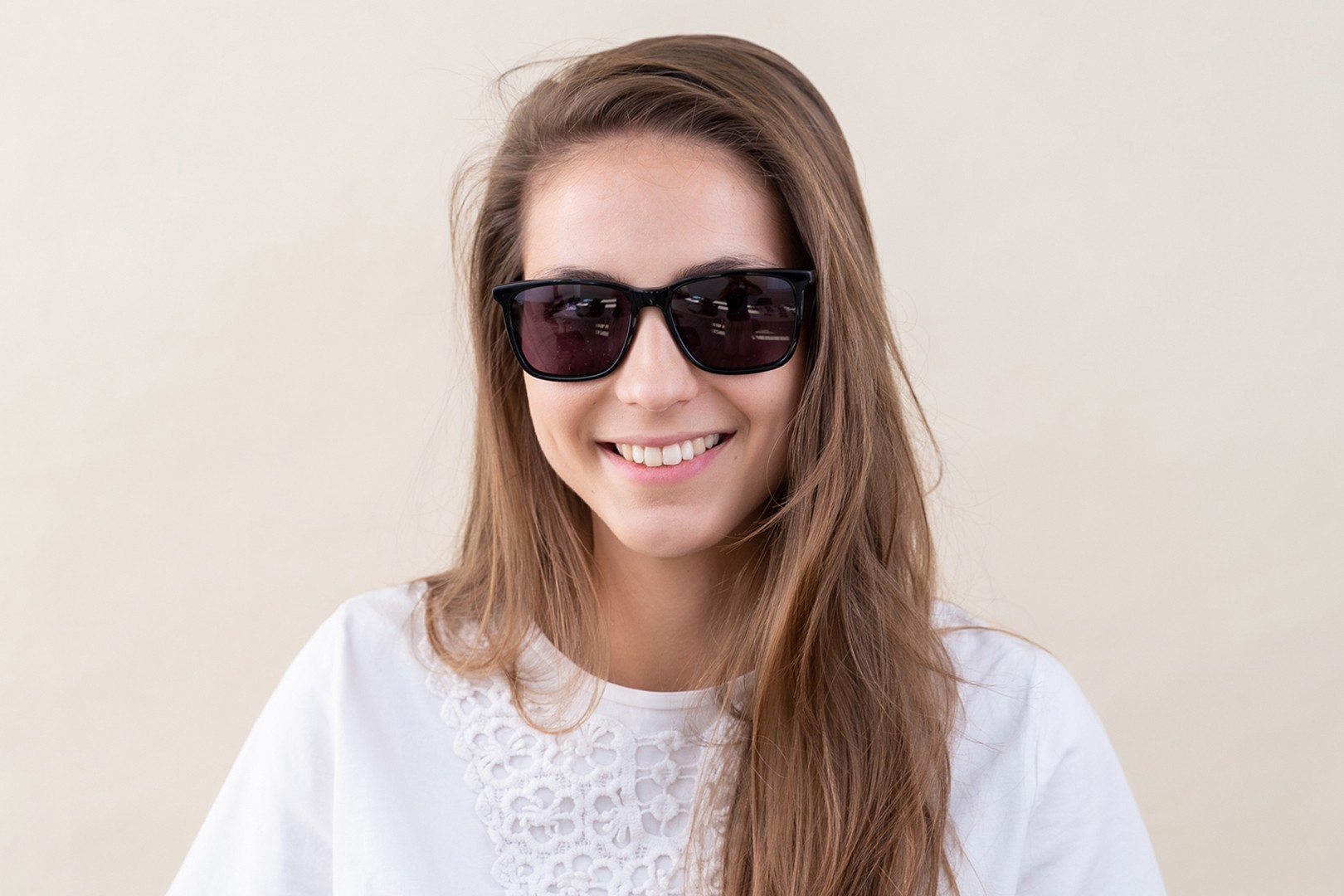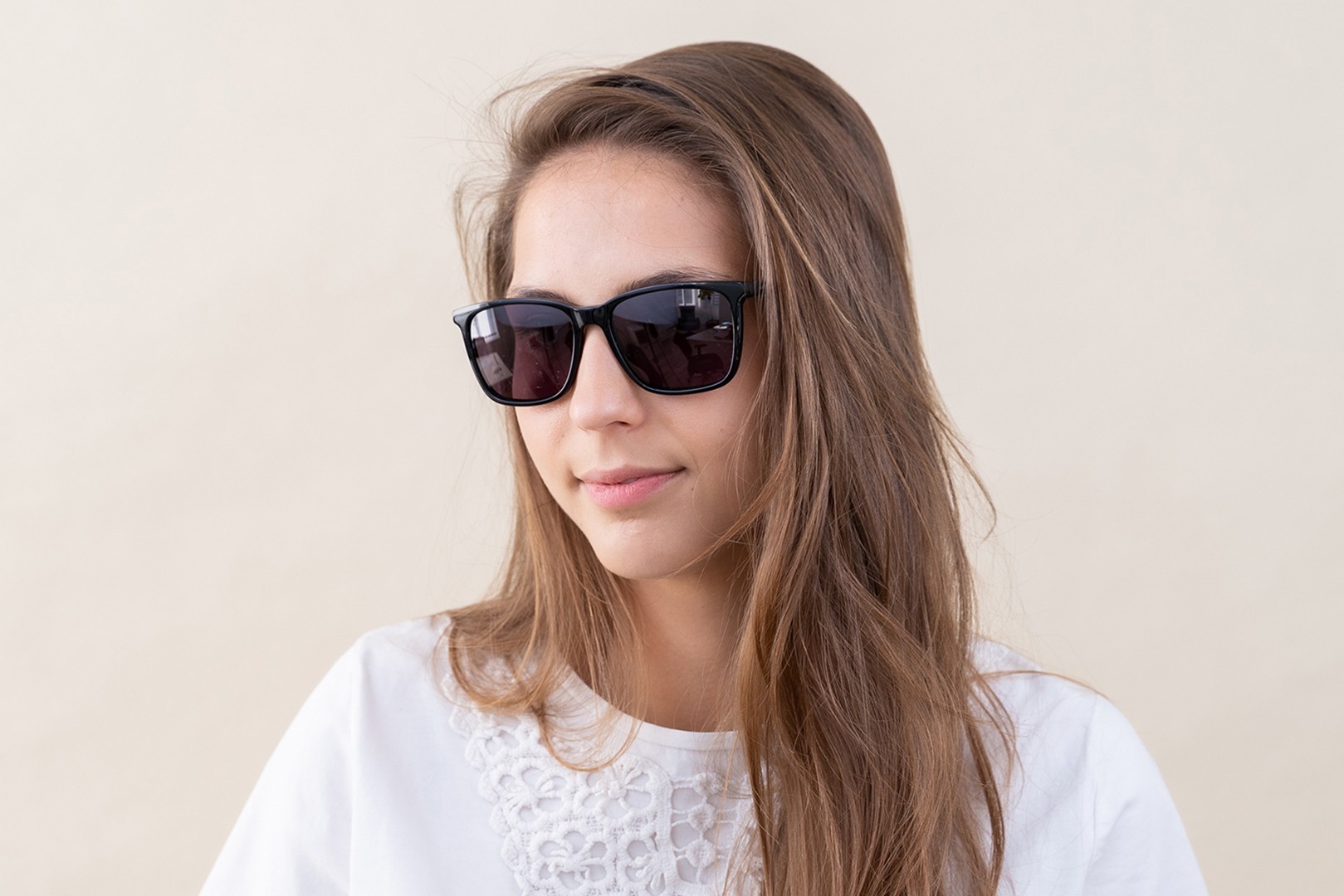 - Pravokotni okvirji sončnih očal so idealna izbira, če imate ovalen ali okrogel obraz.