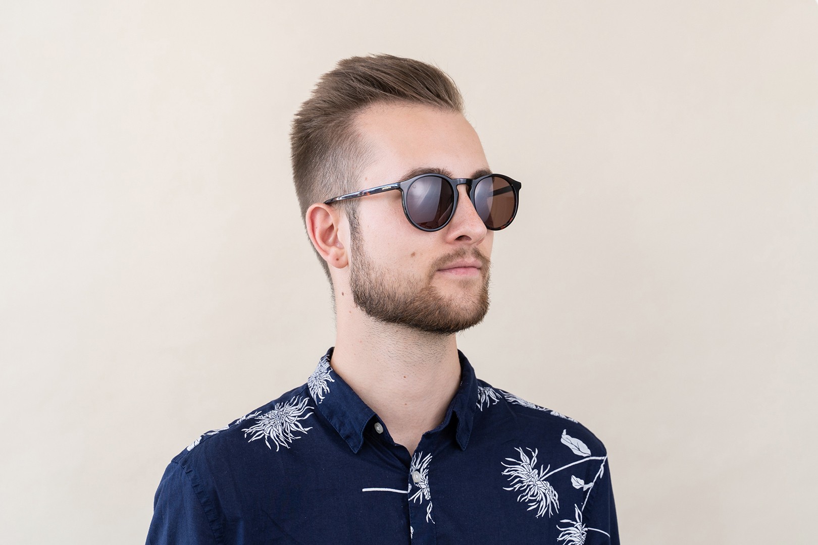 - Okrogli okvirji sončnih očal so idealna izbira, če imate kvadraten ali ovalen obraz.