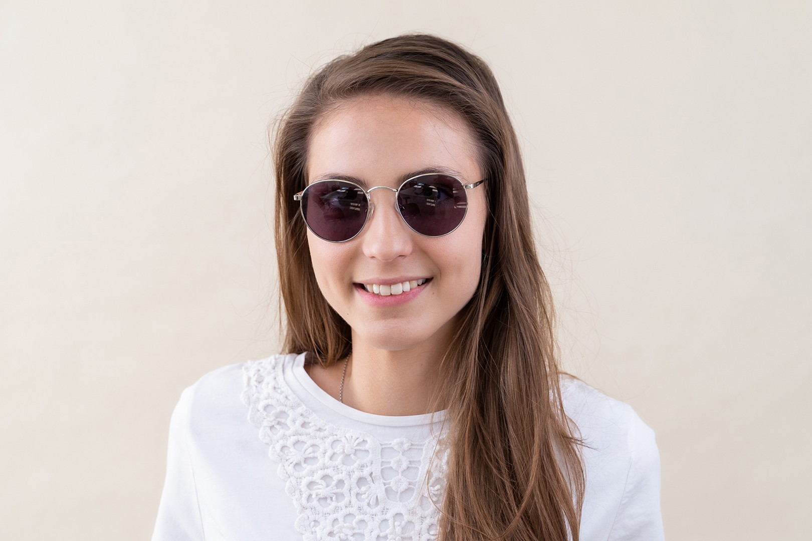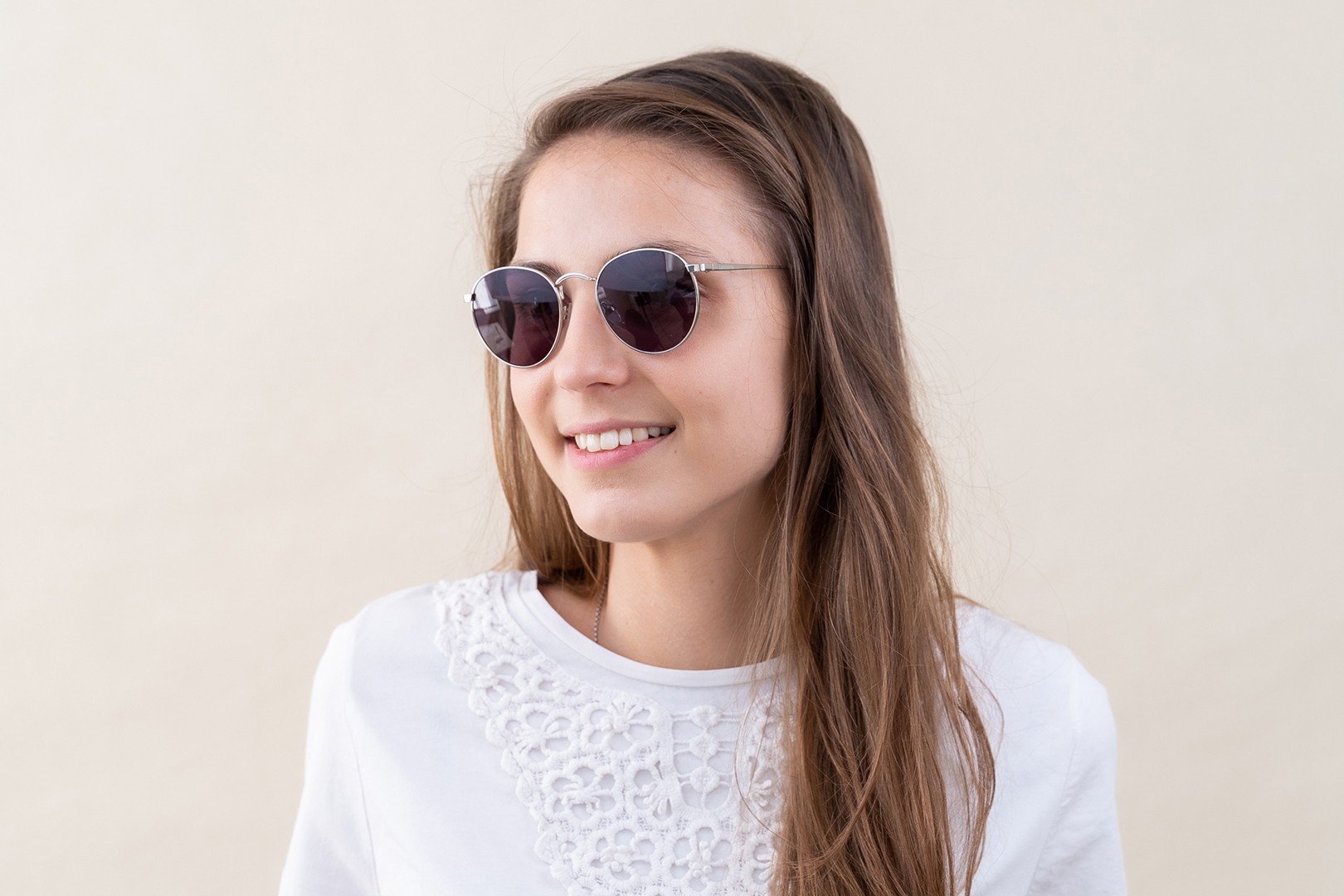 - Okrogli okvirji sončnih očal so idealna izbira, če imate kvadraten ali ovalen obraz.
