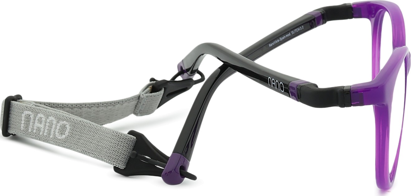 Model očal Glitch 3.0 ima dva nastavljiva tekstilna trakova, ki pomagata odpraviti tveganje izgube očal in zagotavljata boljše prileganje na glavi med različnimi otroškimi dejavnostmi.