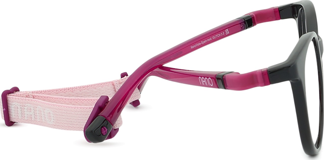 Model očal Glitch 3.0 ima dva nastavljiva tekstilna trakova, ki pomagata odpraviti tveganje izgube očal in zagotavljata boljše prileganje na glavi med različnimi otroškimi dejavnostmi.