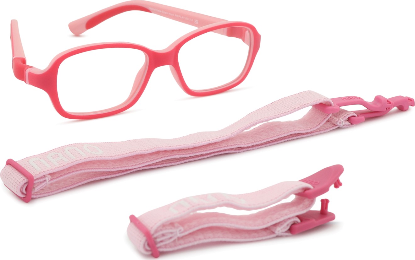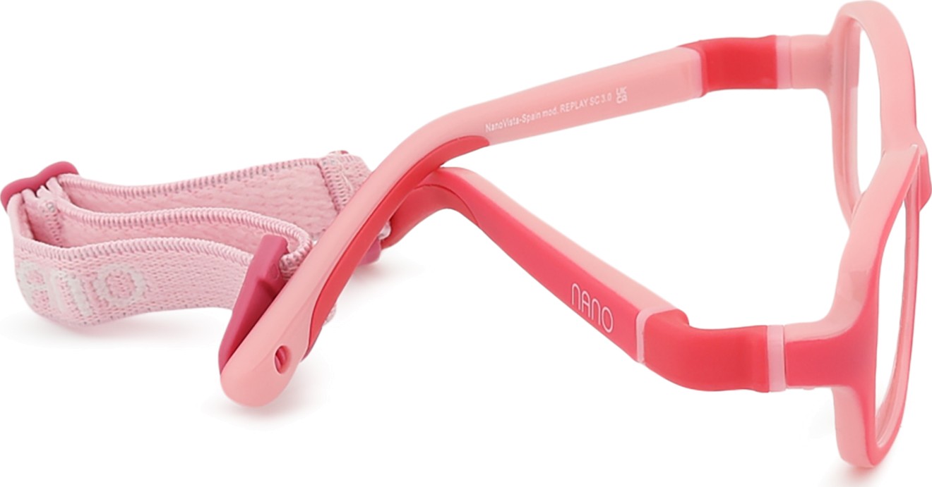 Model očal Re-Play ima dva nastavljiva tekstilna trakova, ki pomagata odpraviti tveganje izgube očal in zagotavljata boljše prileganje na glavi med različnimi otroškimi dejavnostmi.