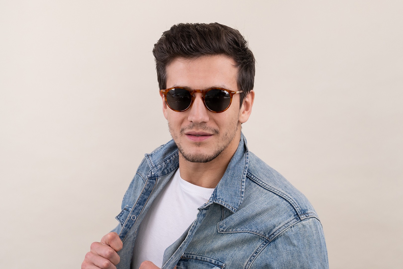 - Okrogli okvirji sončnih očal so idealna izbira, če imate kvadraten ali ovalen obraz.