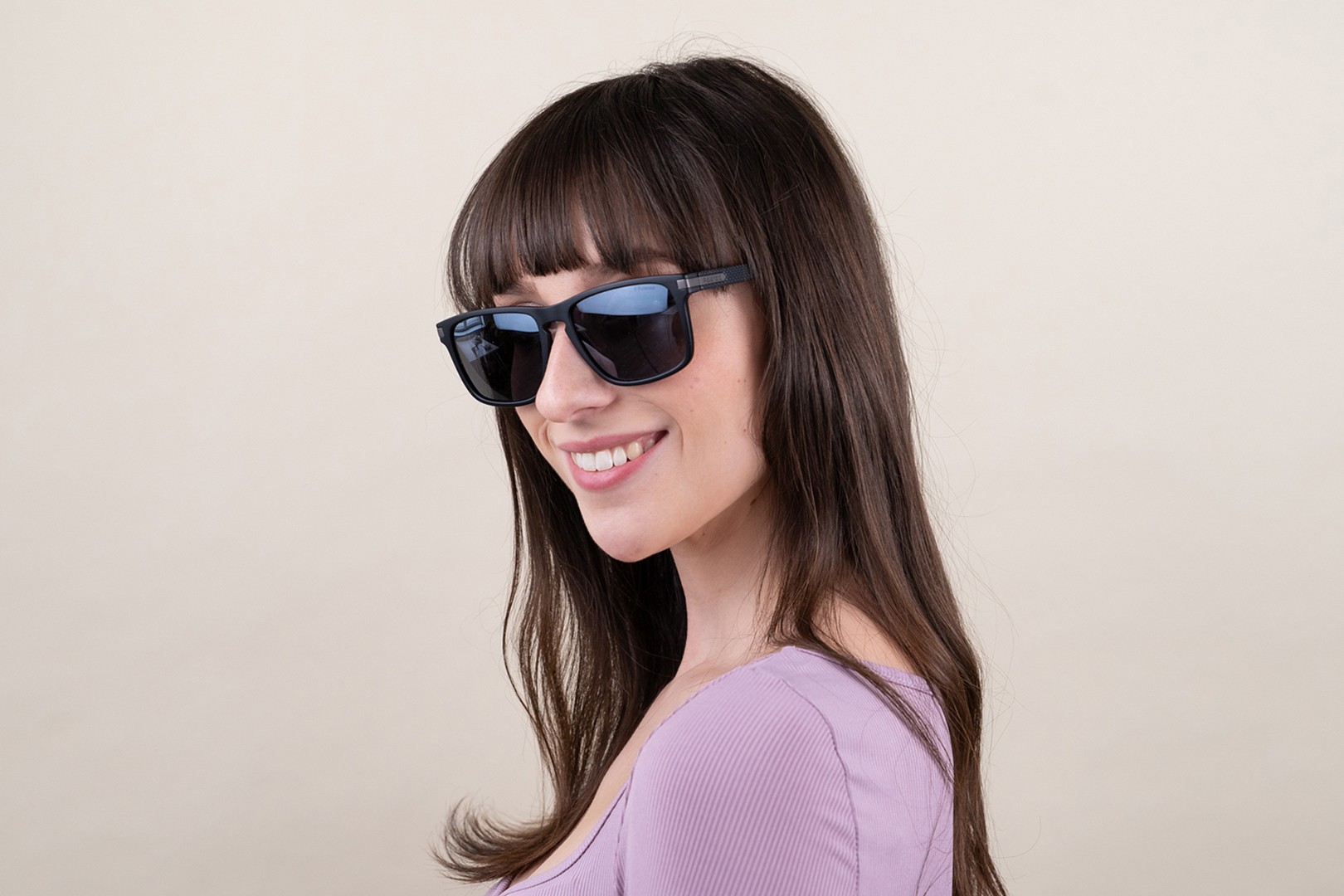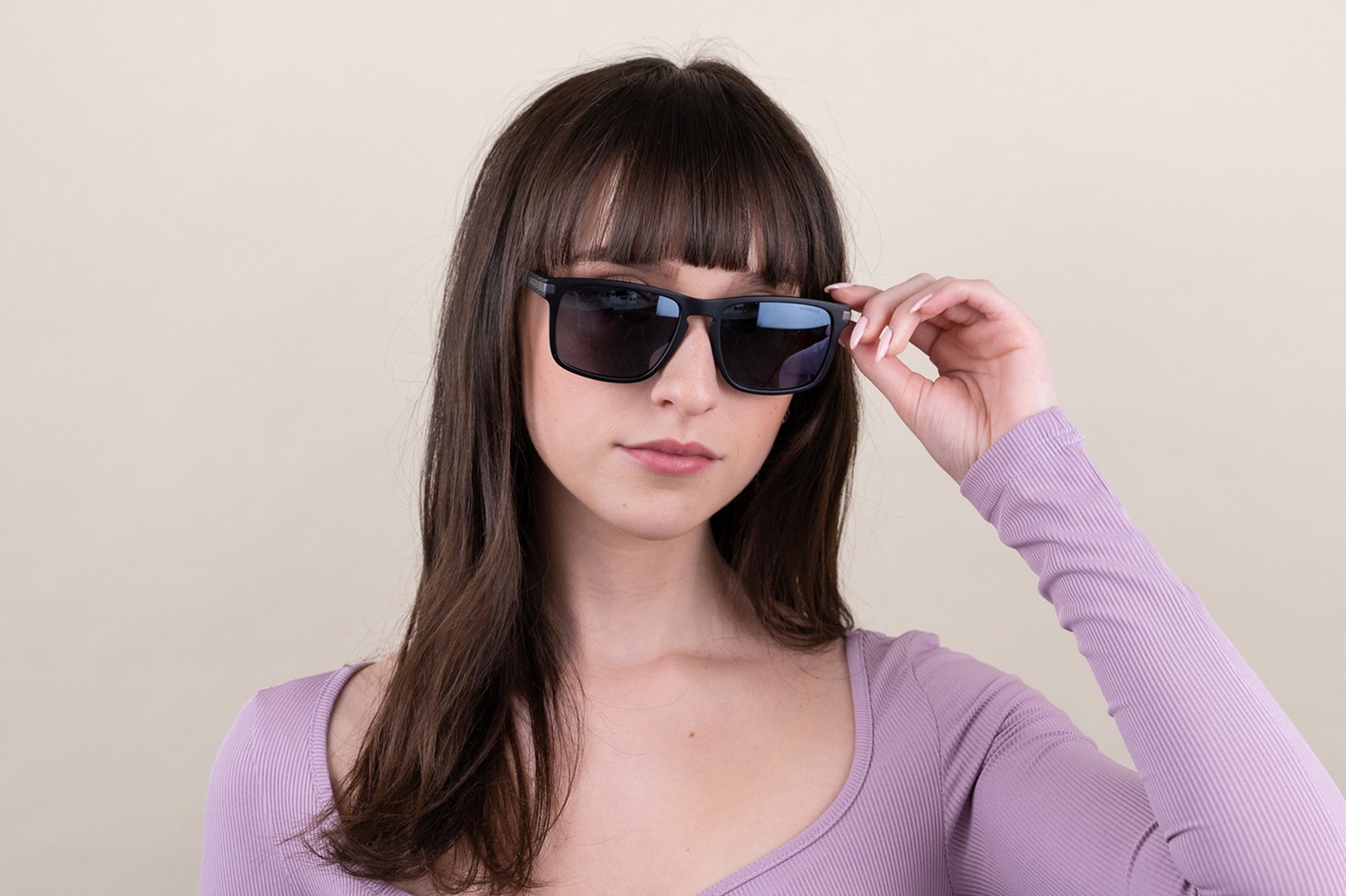 - Pravokotni okvirji sončnih očal so idealna izbira, če imate ovalen ali okrogel obraz.