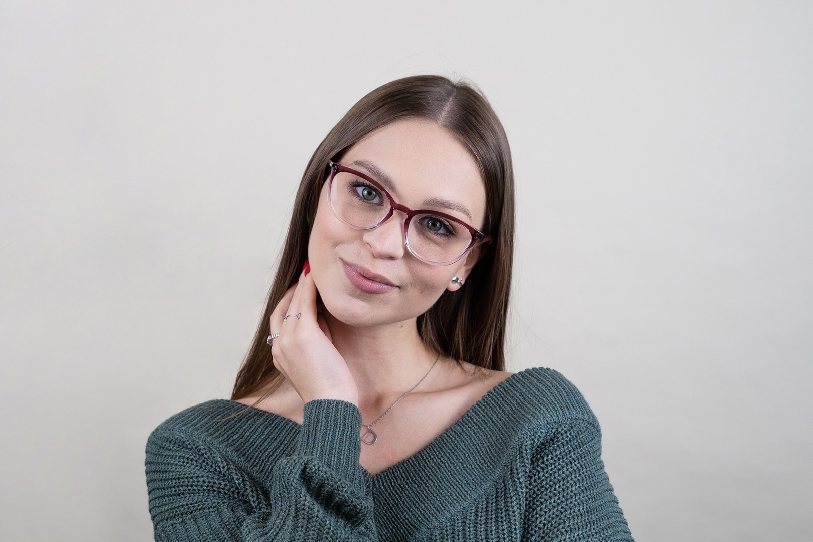 - Rdeča barva okvirjev se odlično ujema s toplim tonom kože ter s črnimi, sivimi, belimi ali temno rjavimi lasmi.